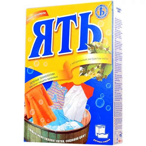 Стиральный порошок ЯТЬ — это бытовое моющее средство, предназначенное для ручной и автоматической стирки. Создан на основе качественного сырья с использованием натуральных компонентов. Активные гранулы обеспечивают удобное использование порошка и безопасность. Экстракт липового цвета бережно заботится о чувствительной коже рук при стирке.