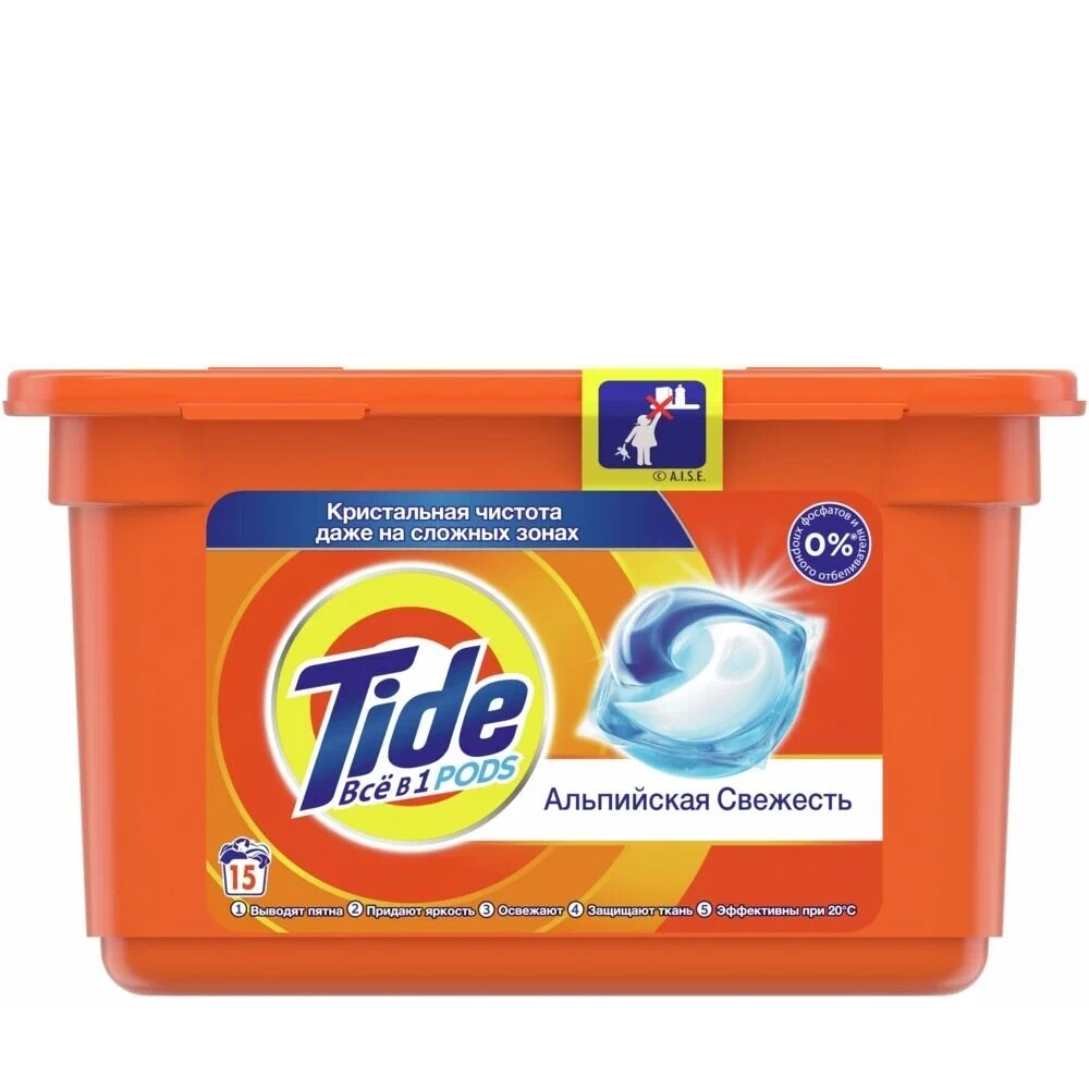 Стиральный порошок «Тайд» жидкий в капсулах Альпийская свежесть 15х22,8 гр.