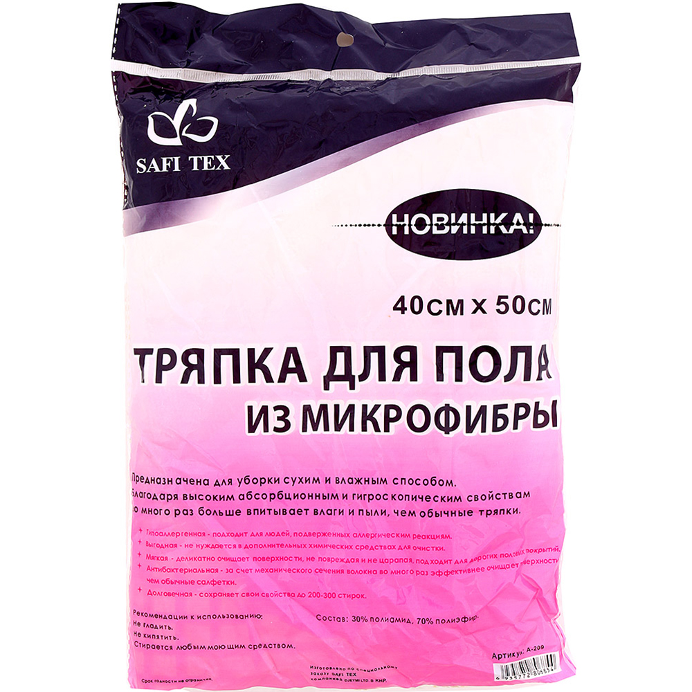 Мягкая тряпка для пола СафиТекс из микрофибры 40×50см создана для регулярной уборки дома. Прочный материал, из которого произведена тряпка, обладает долговечностью и высоким качеством. Можно стирать при температуре 30 градусов. Подходит для влажной и сухой уборки помещений, не оставляет разводов и ворсинок на поверхностях. Полирует пол до блеска, хорошо впитывает влагу и устраняет грязь. Продлите чистоту в Вашем доме с тряпками для пола СафиТекс.