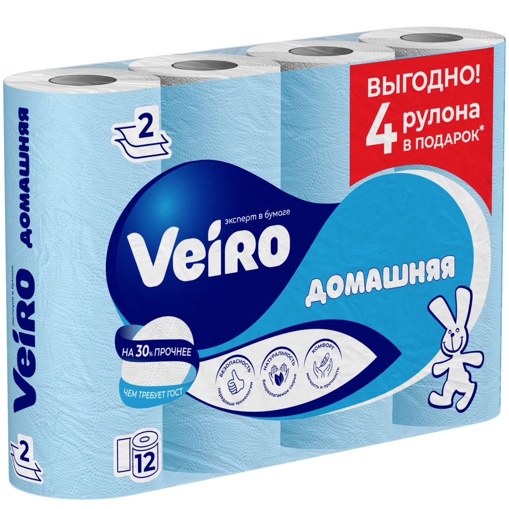 Туалетная бумага «Linia Veiro» Домашняя двухслойная белая 12 шт.