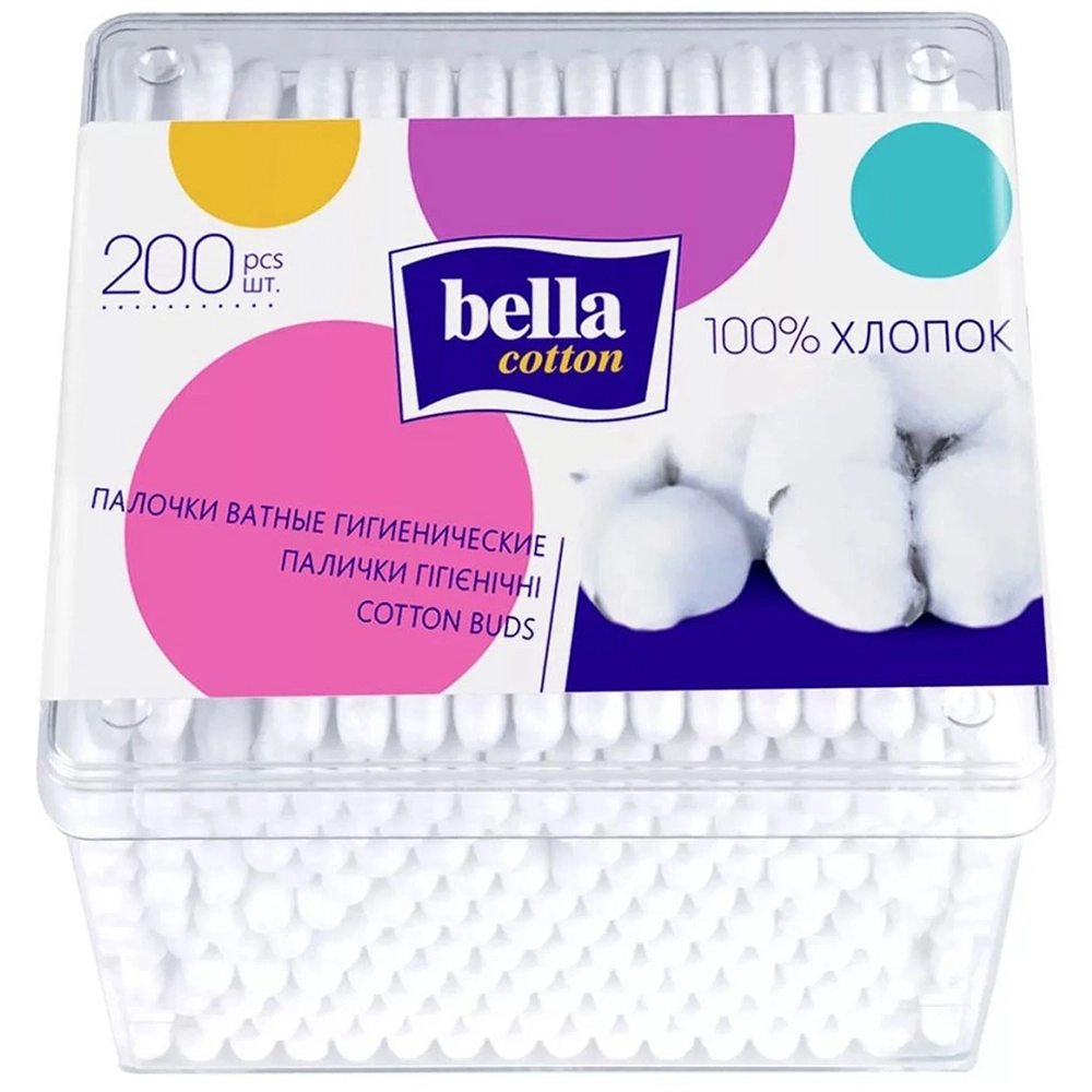 Ватные палочки «Bella» Cotton (пластиковая квадратная упаковка) 200 шт.