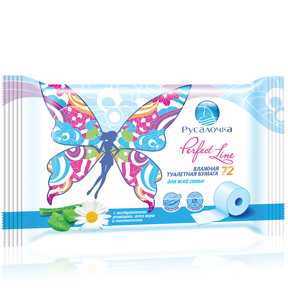 Влажная туалетная бумага «Русалочка» Perfect Line для всей семьи 72 шт.