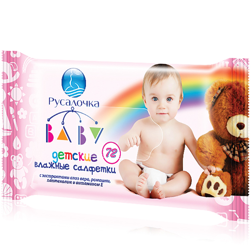Влажные салфетки «Русалочка» Детские Ромашка и алоэ 72 шт.