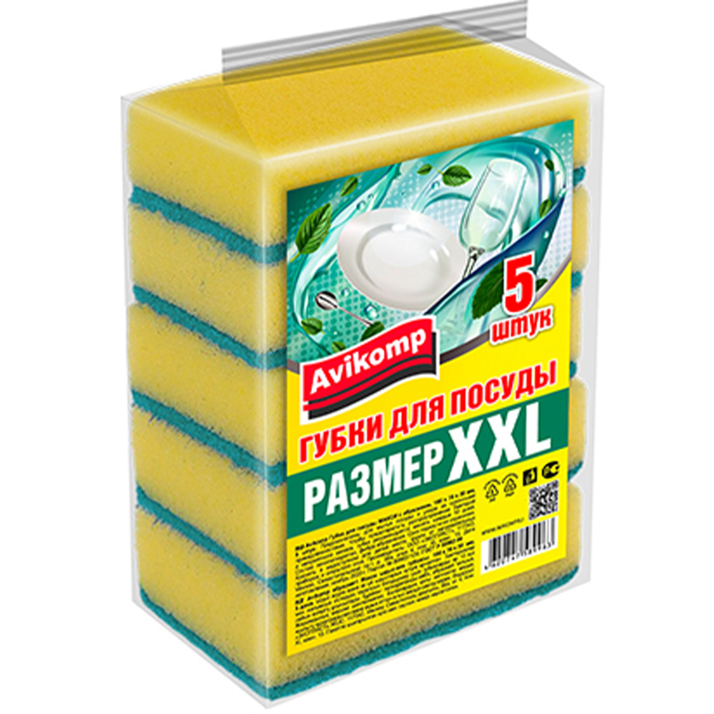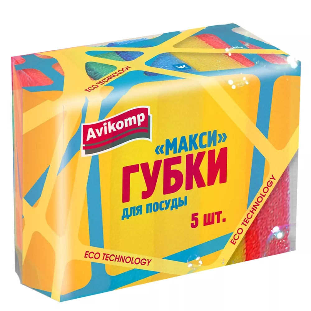 Губка для посуды «Avikomp» Макси Eco Technology Mix 85х60х25 мм 5 шт.