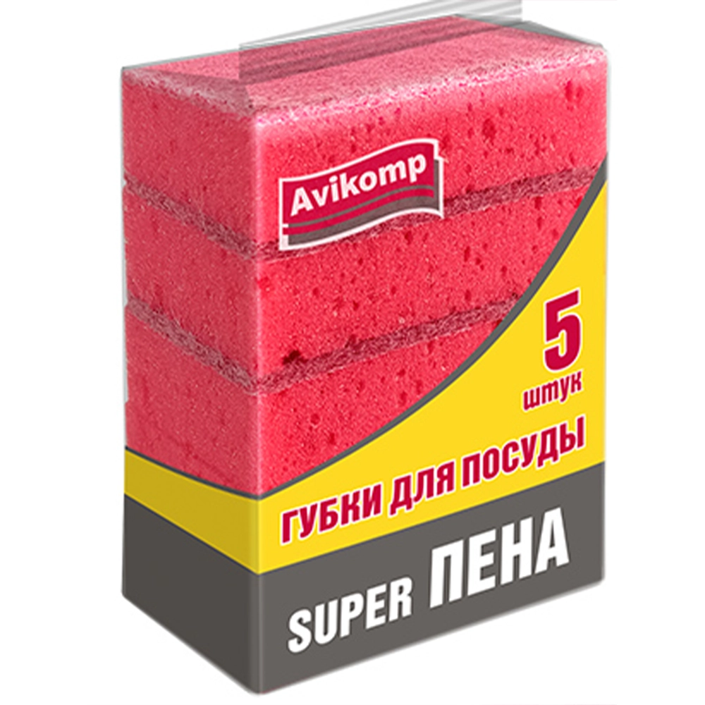 Губки для посуды «Avikomp» Крупнопористые 100х70х30 мм 5 шт.