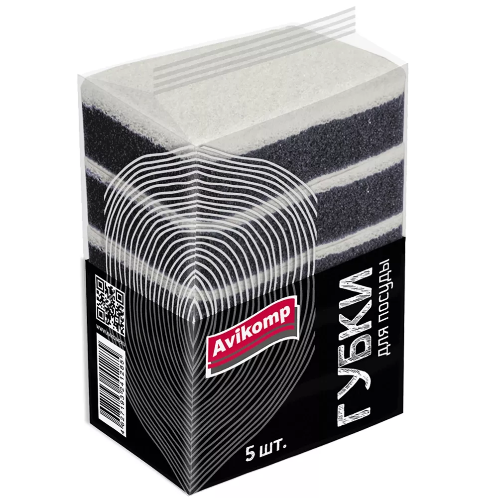 Губка для посуды «Авикомп» Макси с абразивом 100х70х30 мм 5 шт.