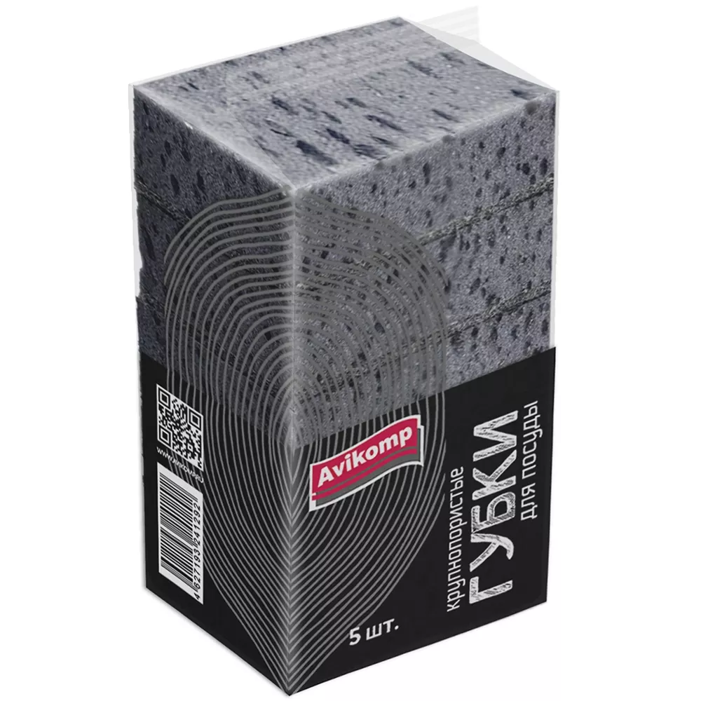 Губки для посуды крупнопористые «Avikomp» Графит 95х65х40 мм 5 шт.