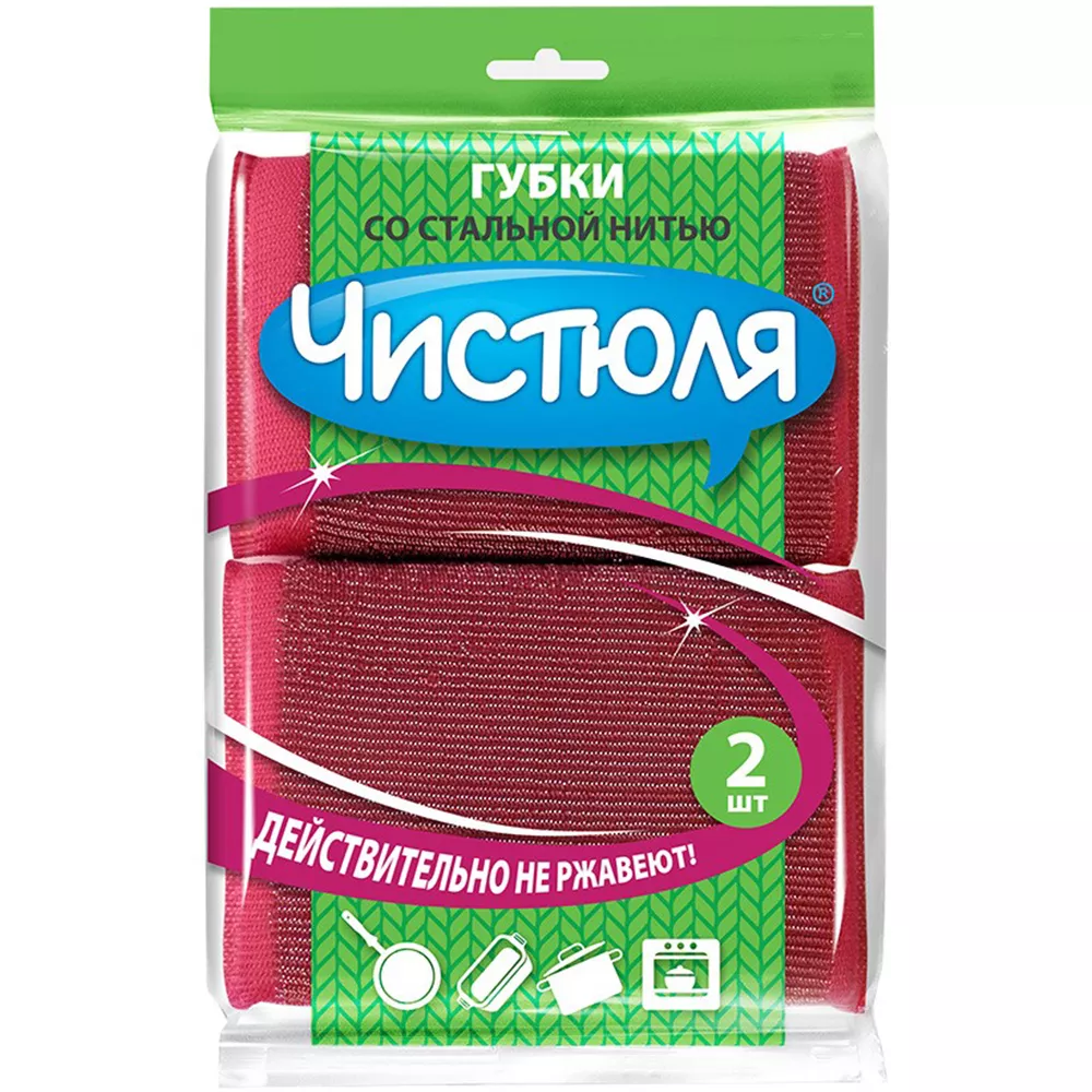 Губка хозяйственная «НХК» Чистюля со стальной нитью в сетке из полиэстера 2 шт.