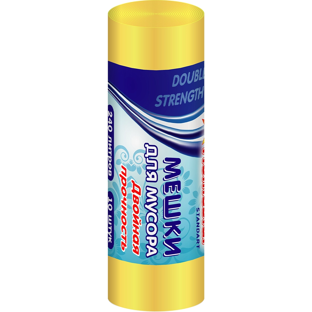 Мешки для мусора «ХоумСтар» Стандарт Двойная прочность желтые ПНД+ПВД 240 л. 10 шт.