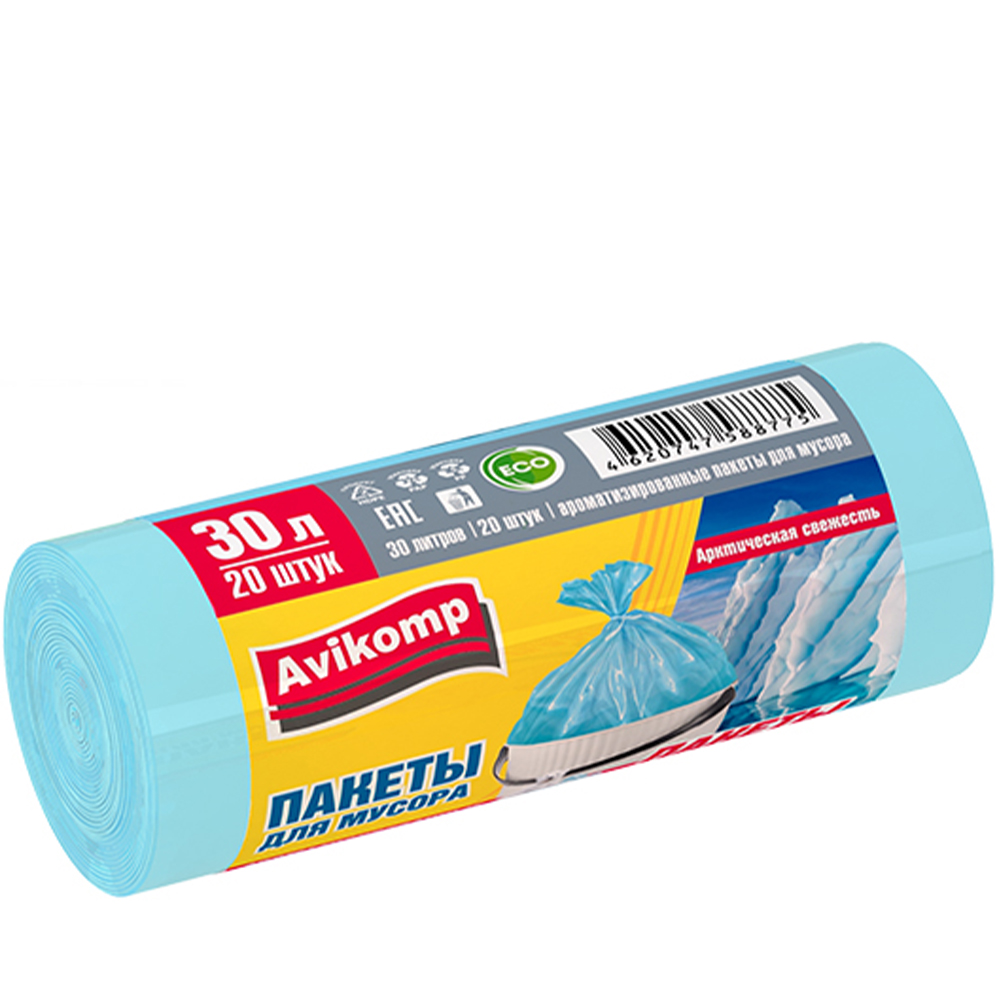Пакеты для мусора «Авикомп» ароматизированные «Арктическая свежесть» Светло-голубые 30 л. 20 шт.