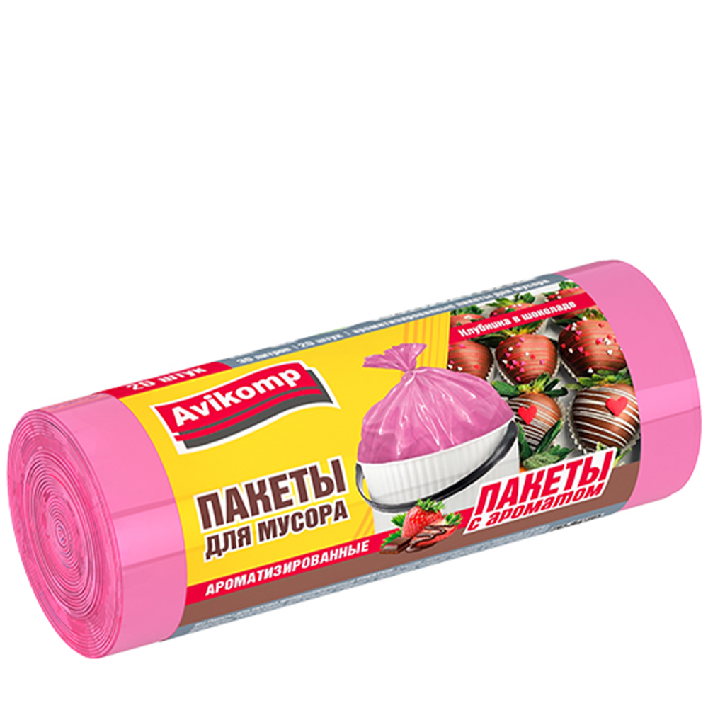 Пакеты для мусора «Авикомп» ароматизированные «Клубника в шоколаде» Серо-розовые 30 л. 20 шт.