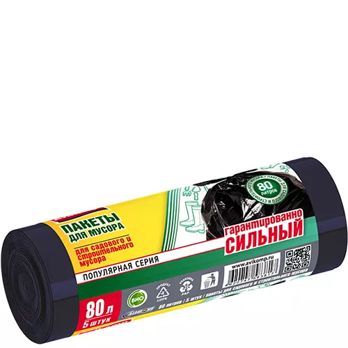 Пакеты для садового и строительного мусора «Avikomp» Popular ПВД черные 80 л 5 шт.