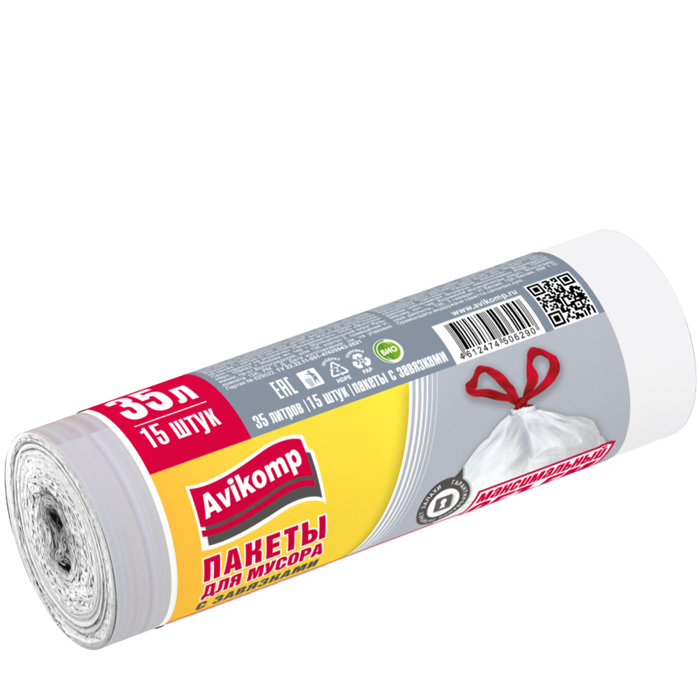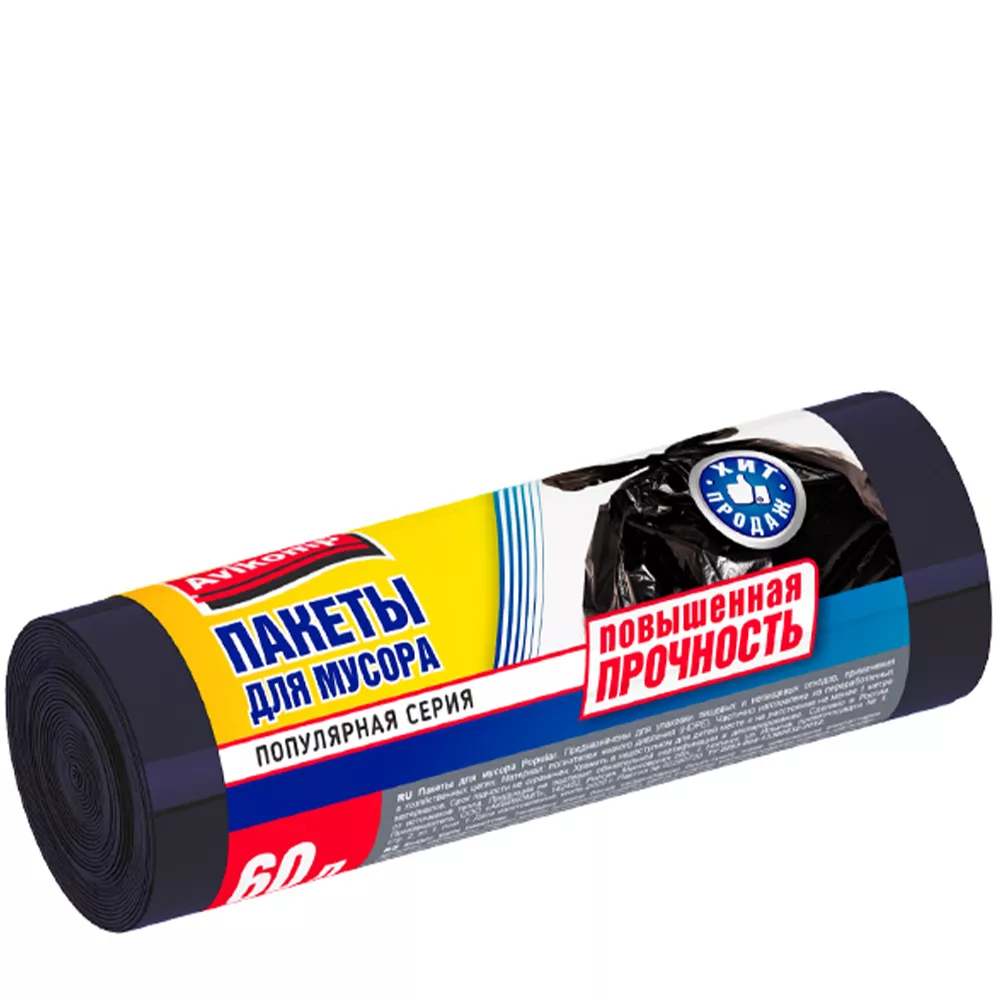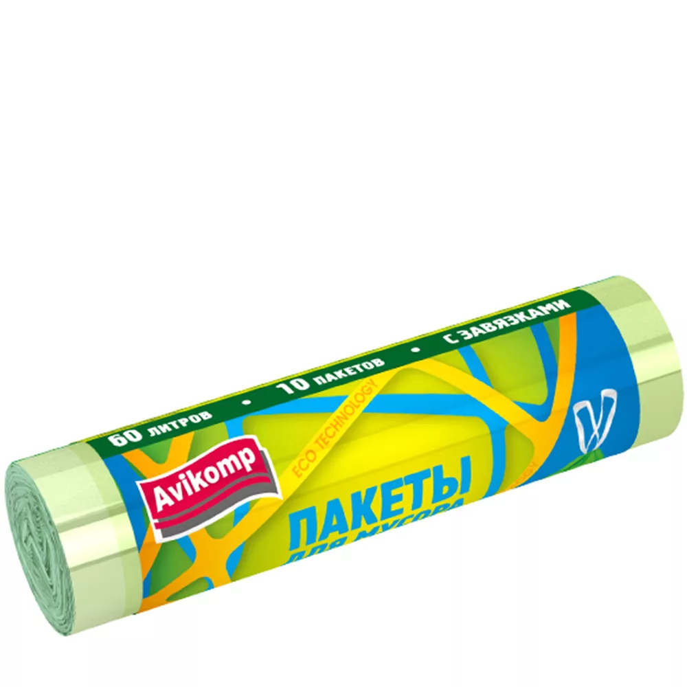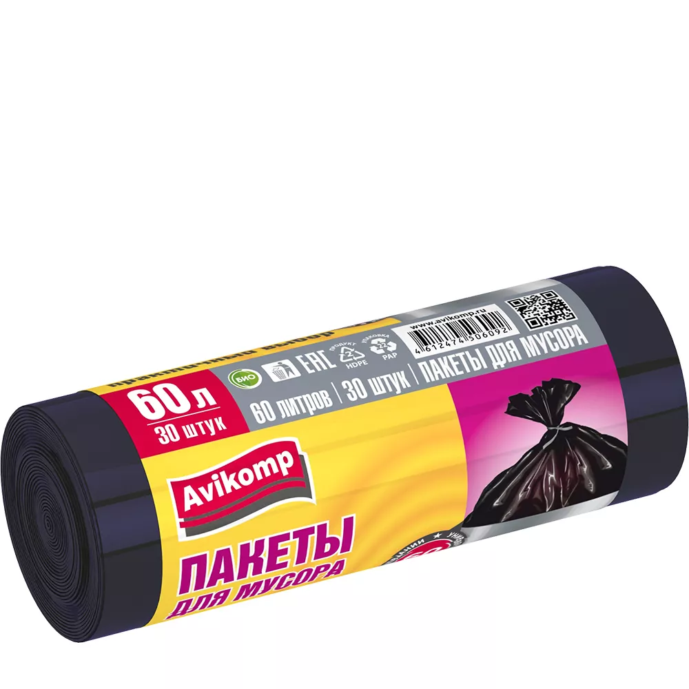 Пакеты для мусора «Avikomp» повышенной прочности ПНД черные 60 л 20 шт.