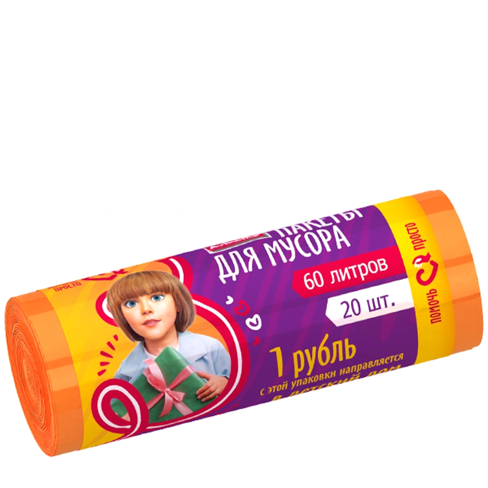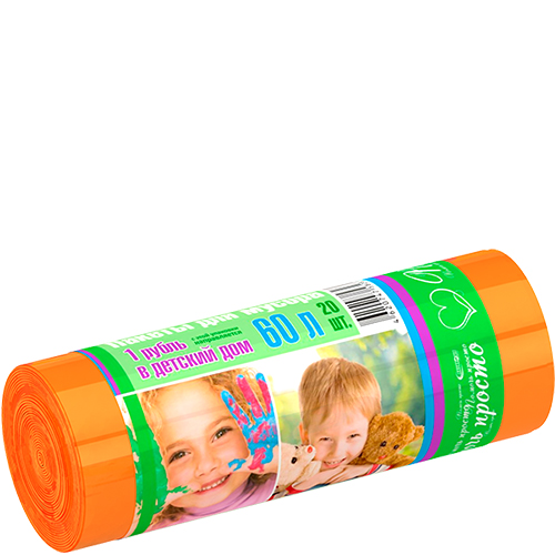Пакеты для мусора повышенной прочности «Avikomp» Помочь просто ПНД оранжевые 60 л 20 шт.