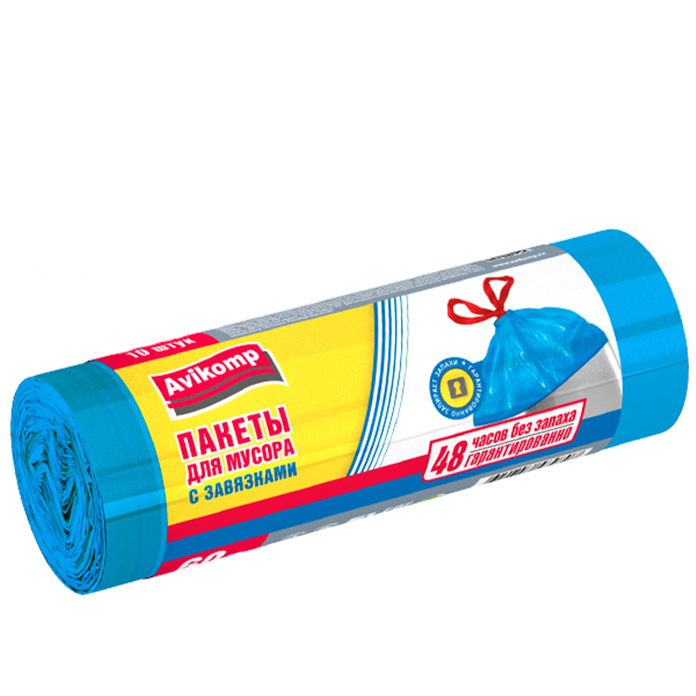 Пакеты для мусора «Авикомп» ПВД с завязками Голубые 60 л. 10 шт.