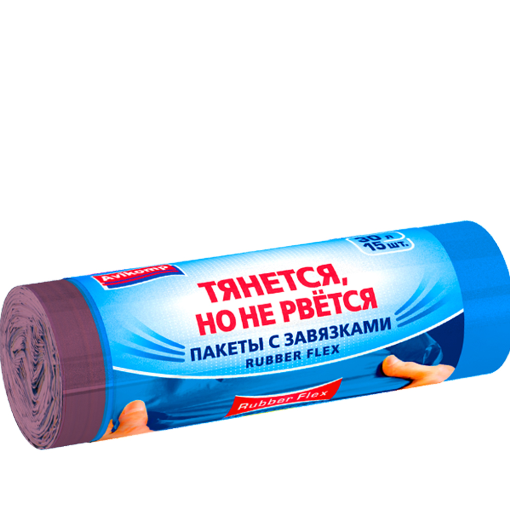 Пакеты для мусора «Авикомп» с завязками Rubber Flex Prestige ПВД голубые 30 л 15 шт.