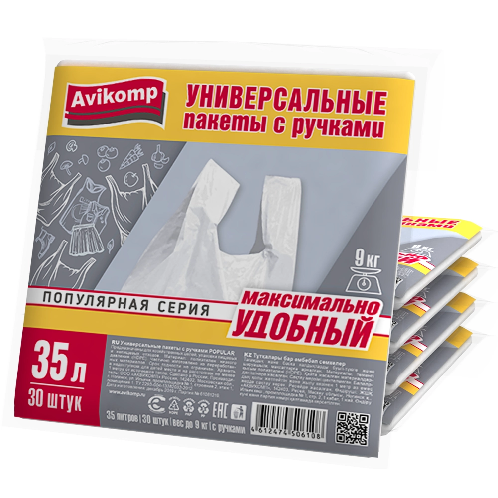 Пакеты для мусора «Avikomp» с ручками в пластах белые 35 л 30 шт.