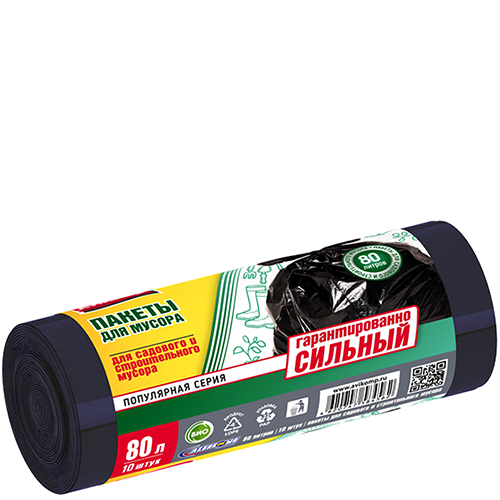 Пакеты для садового и строительного мусора «Avikomp» Popular ПВД черные 80 л 10 шт.