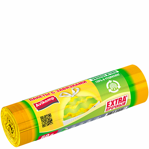 Пакеты для мусора «Avikomp» Полосатики с завязками Prestige ПСД желтые/салатовые 60 л 10 шт.