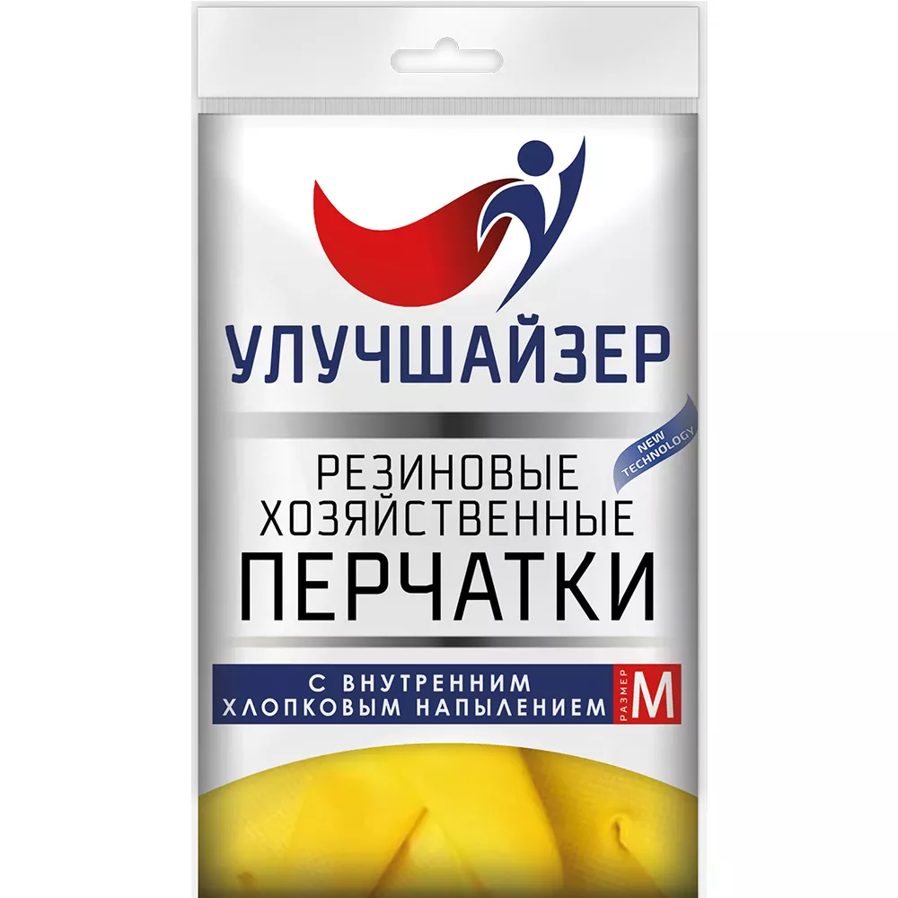 Перчатки резиновые хозяйственные Улучшайзер с внутренним хлопковым напылением желтые (M)