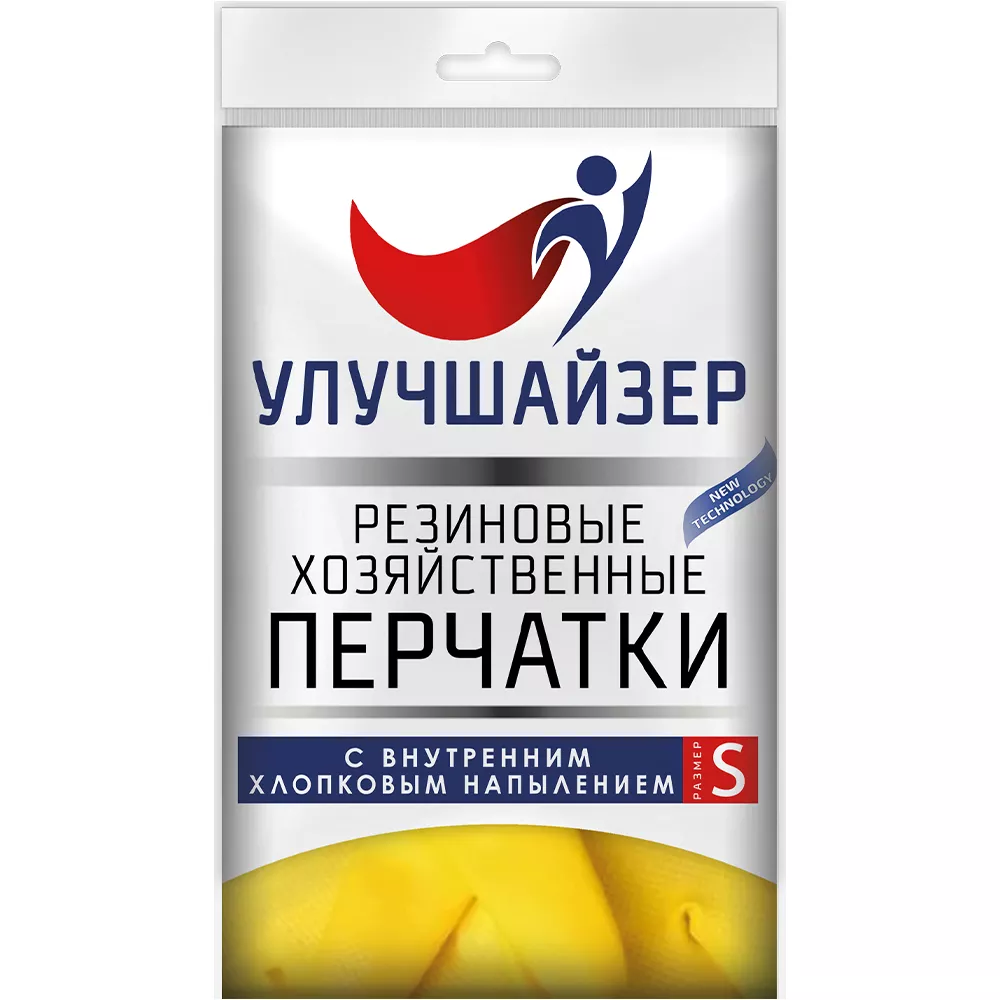 Перчатки резиновые хозяйственные Улучшайзер с внутренним хлопковым напылением желтые (S)