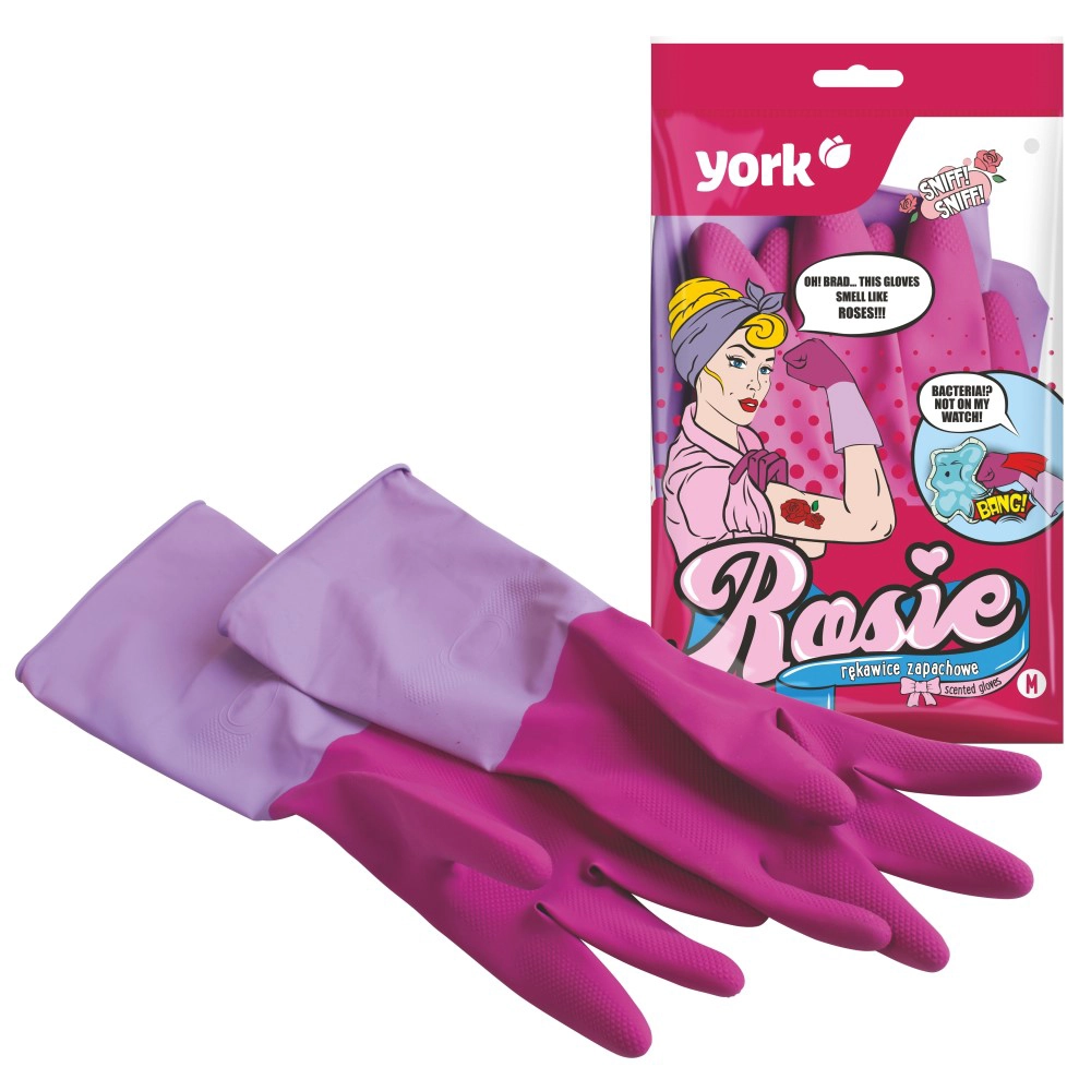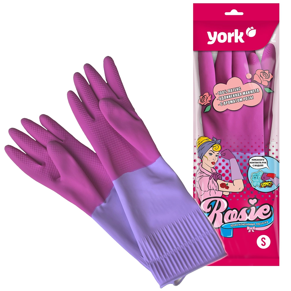 Перчатки резиновые с удлинённой манжетой «York» Рози ароматизированные (S)