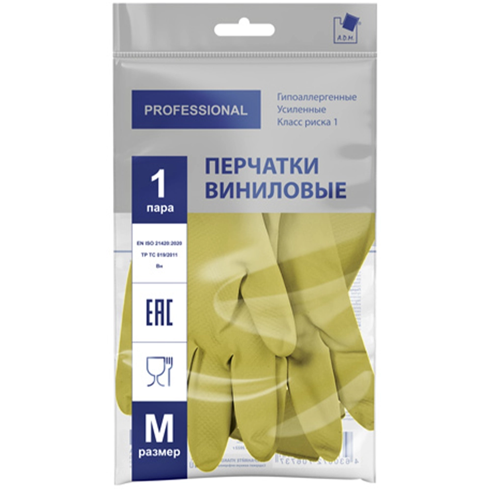 Перчатки хозяйственные виниловые «TP TC» желтые 2 шт (M)