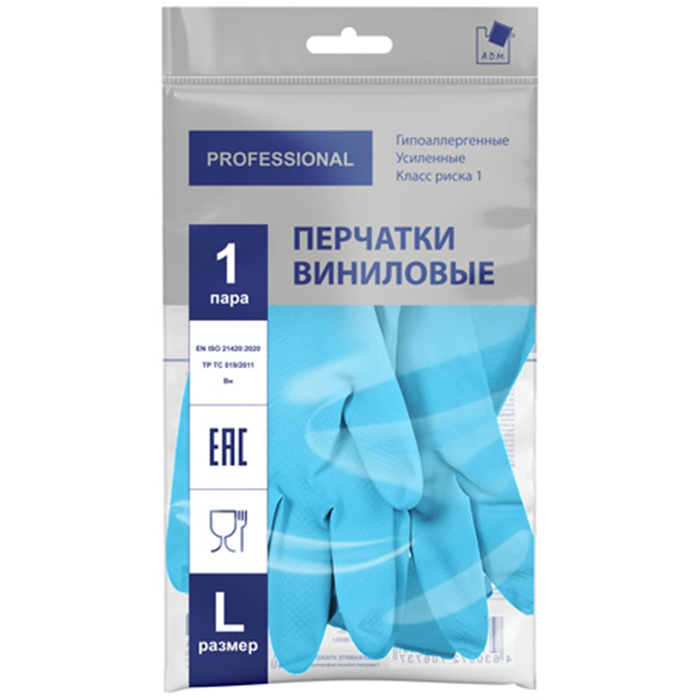 Перчатки хозяйственные виниловые «TP TC» голубые 2 шт (M)