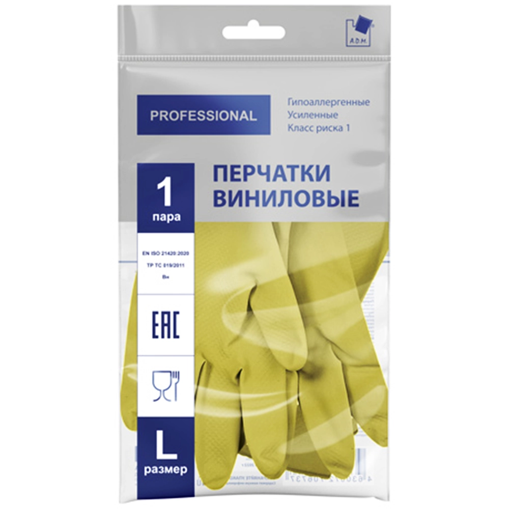 Перчатки хозяйственные виниловые «TP TC» желтые 2 шт (L)