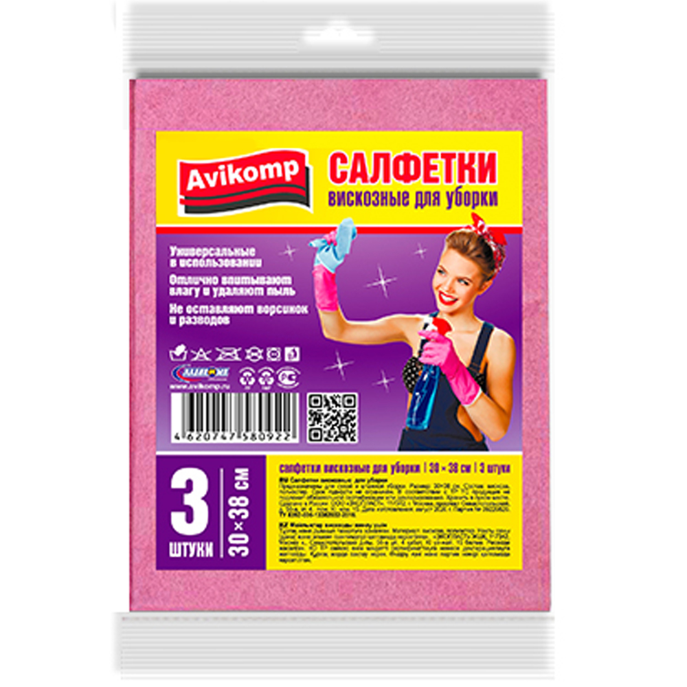 Салфетки для уборки «Авикомп» универсальные вискозные 30х38 см 3 шт