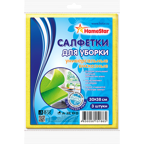 Салфетки ХоумСтар для кухни универсальные вискозные 30х38 см 3 шт.